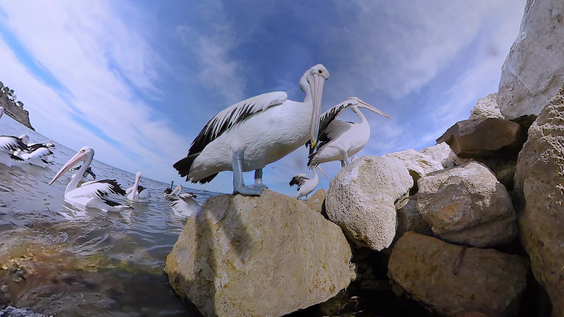 Species: Spotted moray, Spotted pelican, Bottlenose dolphin, Stingray, Australian sea lion, California sea lion, Green turtle, Common octopus, Lionfish, Whale shark, Grey reef shark, and Sperm whale.