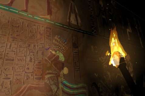 With this virtual reality experience, you will slip into Champollion’s skin to relive this unique intimate experience and this historical milestone. Lit by torchlight, guided by Champollion’s voice, the visitor-explorer enters the temple, recreated from David Roberts’ watercolors. Step by step, they discover its masterpieces, from the gigantic bas-relief of the battle of Qadesh to the sculptures of Ramses II and the gods Ra-Harakhty, Amun-Ra, and Pta…
