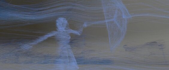 The interplay of scents, warmth, respiration, and both natural and artificial gusts of wind, influenced by invisible forces, renders the imperceptible tangible. These atmospheric movements unveil a sequence of events inviting us to follow the woman on her meanderings, plunging us into a realm crafted entirely from air.