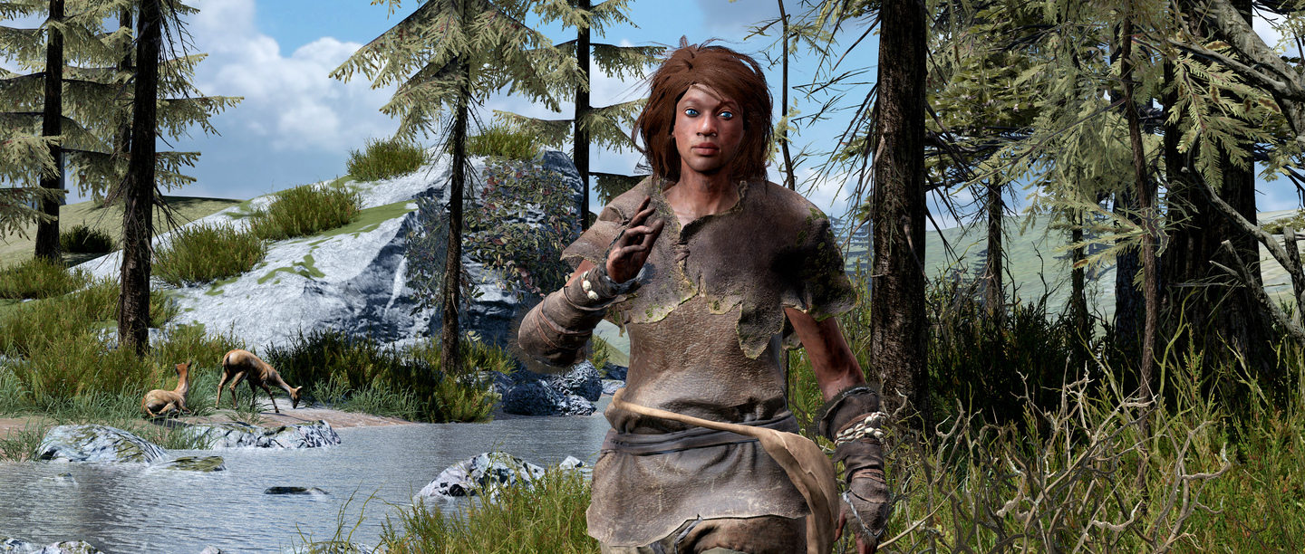 Lady Sapiens - The Experience offers a journey through time in the body of a Sapiens woman. Plunged into the heart of an ancestral valley, you make an unforgettable encounter with a Palaeolithic huntress. She invites you to follow her and leads you to her clan. In a painted cave, she introduces you to a shaman woman. She familiarises you with the art of cave painting. In the heart of the village, you then go to a hut where you learn how to carve your tool, a spear, which will later allow you to take part in a mammoth hunt.