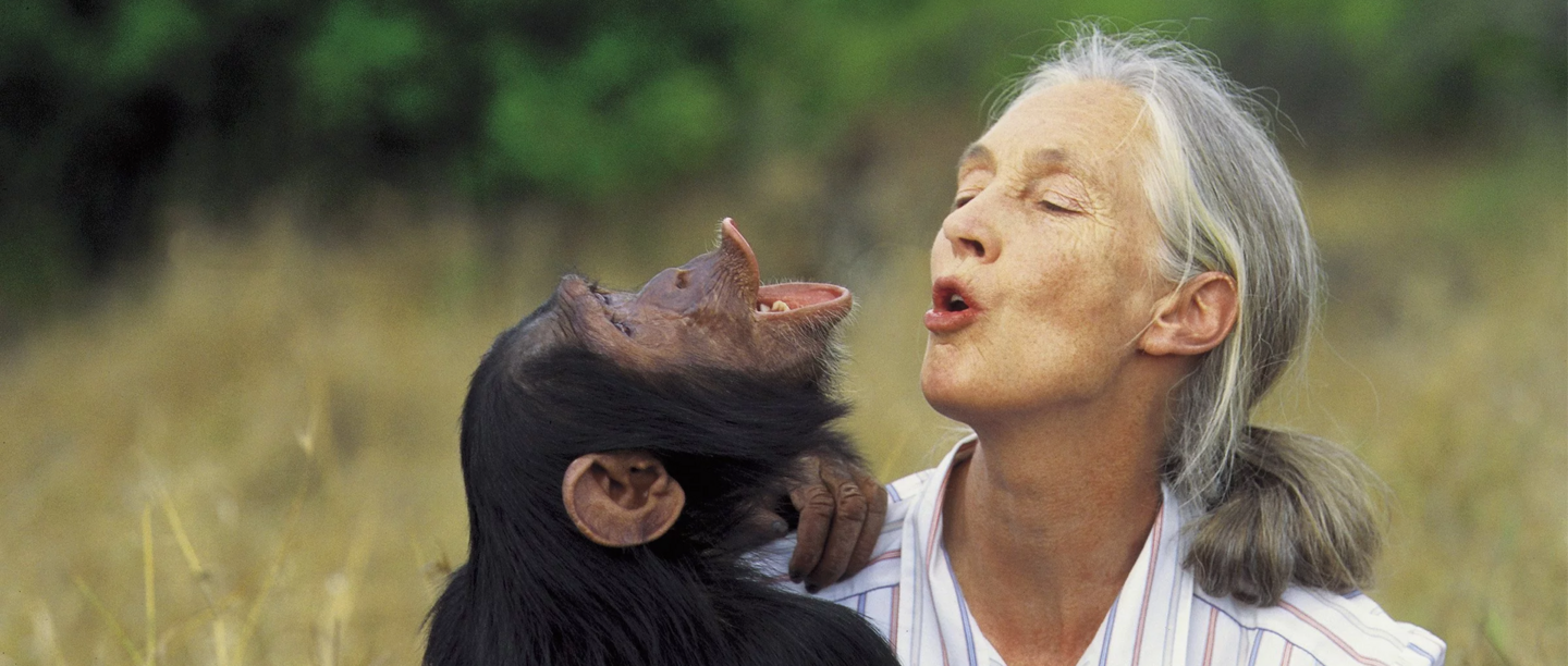Elle partage avec passion ses grandes découvertes : leur vie en société, leurs personnalités individuelles, la façon dont ils fabriquent des outils et les utilisent… Ses recherches ont montré qu'il existe une frontière ténue entre l'homme et les grands singes. Aujourd’hui, à l’heure où les chimpanzés et d’autres espèces sont menacées par l’activité humaine, cette histoire sensibilise notre conscience collective et appelle à la préservation du règne animal et de ses habitats.