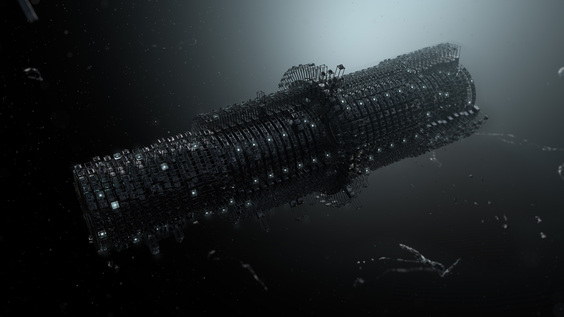 Au cœur du néant, à l’horizon d’un espace infini et d’un temps insondable, erre une imposante géométrie. Un tétraèdre immense qui bientôt va se disloquer pour s’éparpiller et délivrer par son changement de forme un mystérieux message.