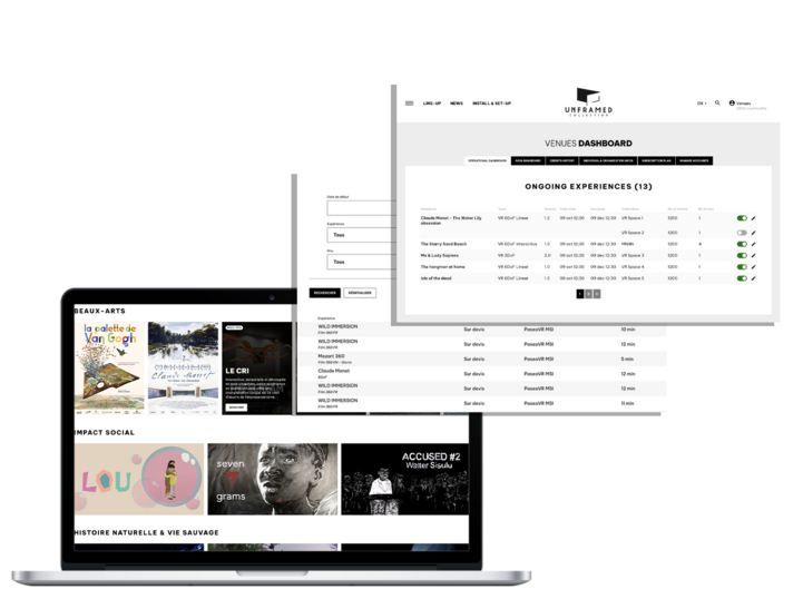 Cette solution SaaS est aujourd’hui couplée à un CMS (Content Management System). Ce CMS permet à nos clients lieux de diffusion de gérer l'ensemble du cycle de vie des expériences immersives sur leurs équipements. Ce cycle de vie sécurisé est constitué de trois étapes phares : l’installation, l’exploitation et enfin la suppression.